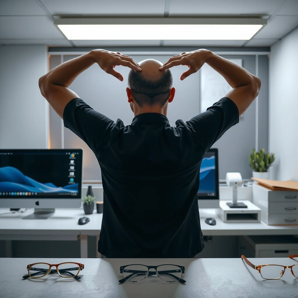 Lakukan rotasi mata perlahan (atas-bawah-kiri-kanan) untuk melonggarkan otot siliar.